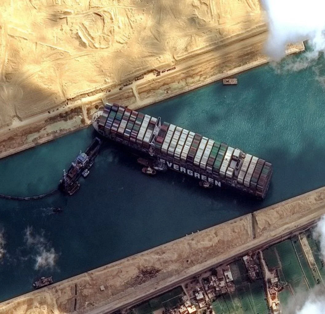 Evergreen cargo ship blocking the Suez Canal, 2021